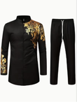 Black And Gold Dragon Pattern Men's Traditional Two-Piece Set