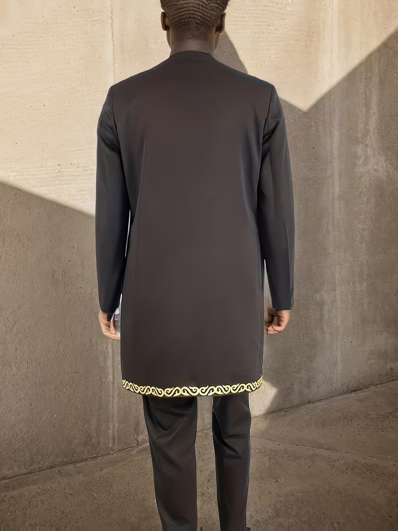 Black And Gold Embroidered Men's Formal Traditional Set