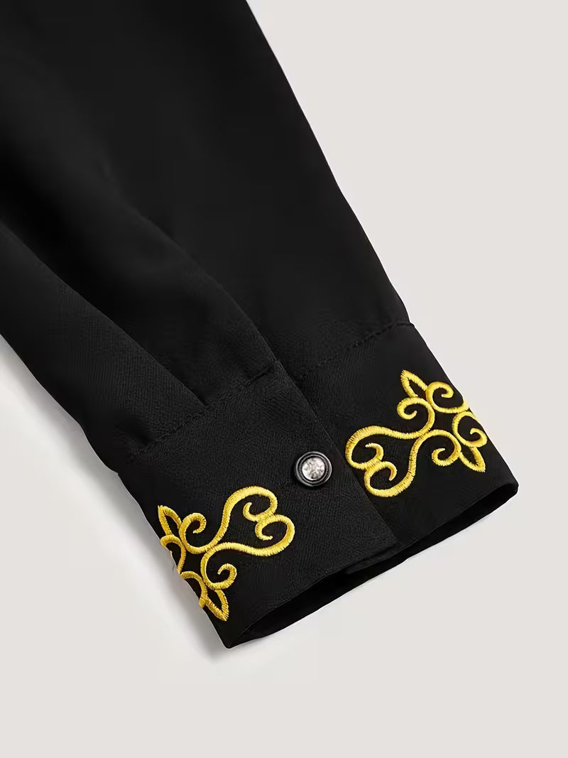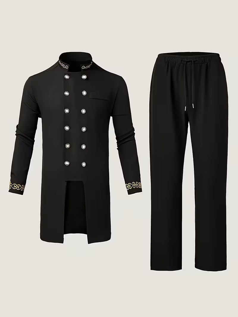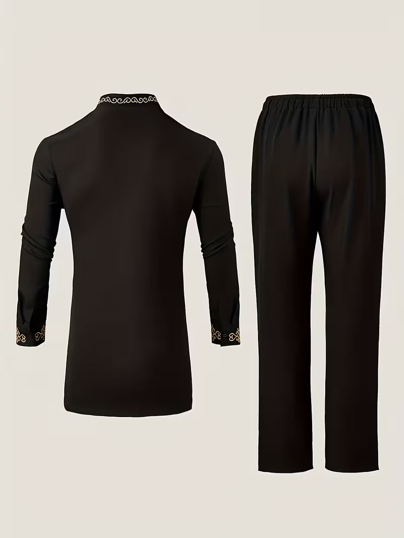 Black And Gold Regal Button Men's Traditional Two-Piece Set