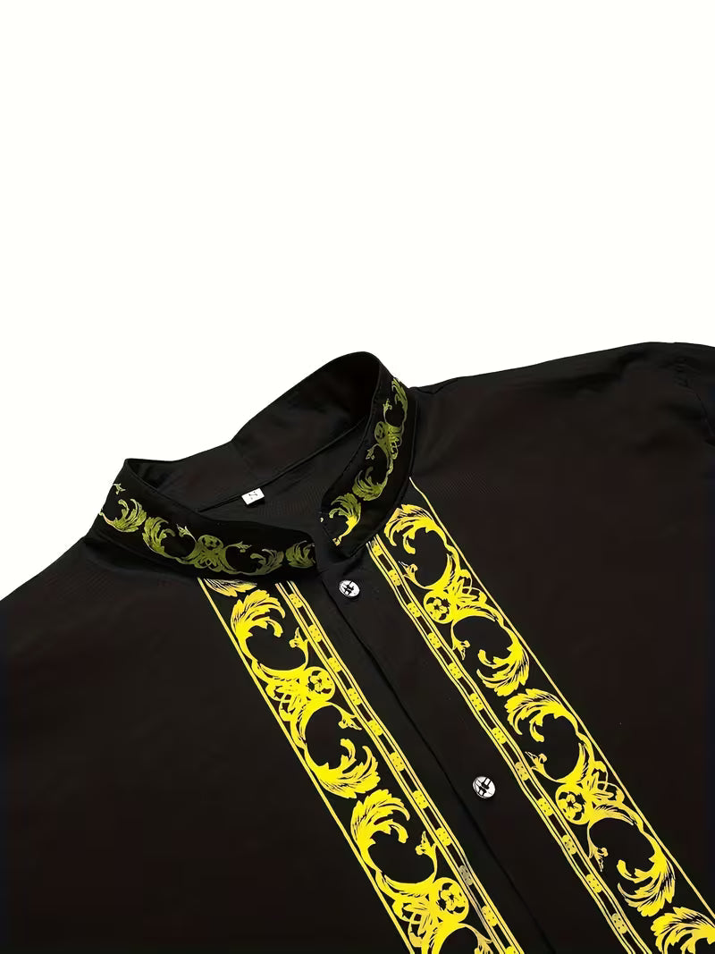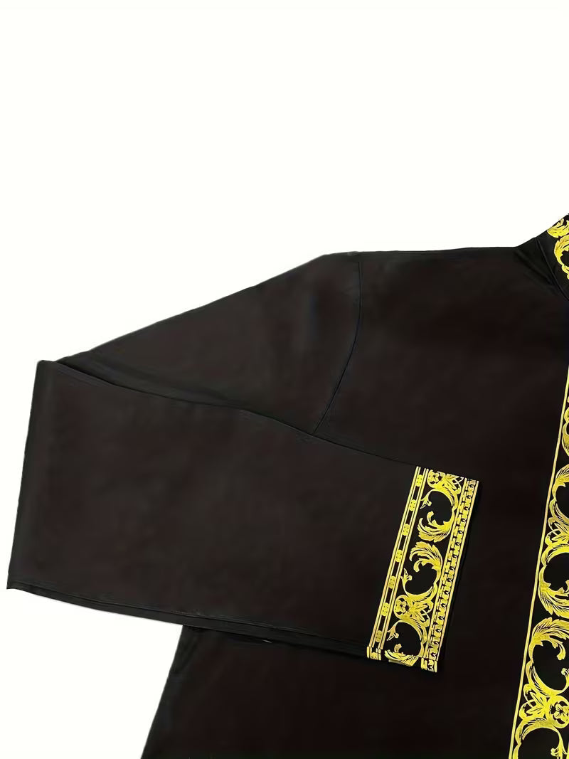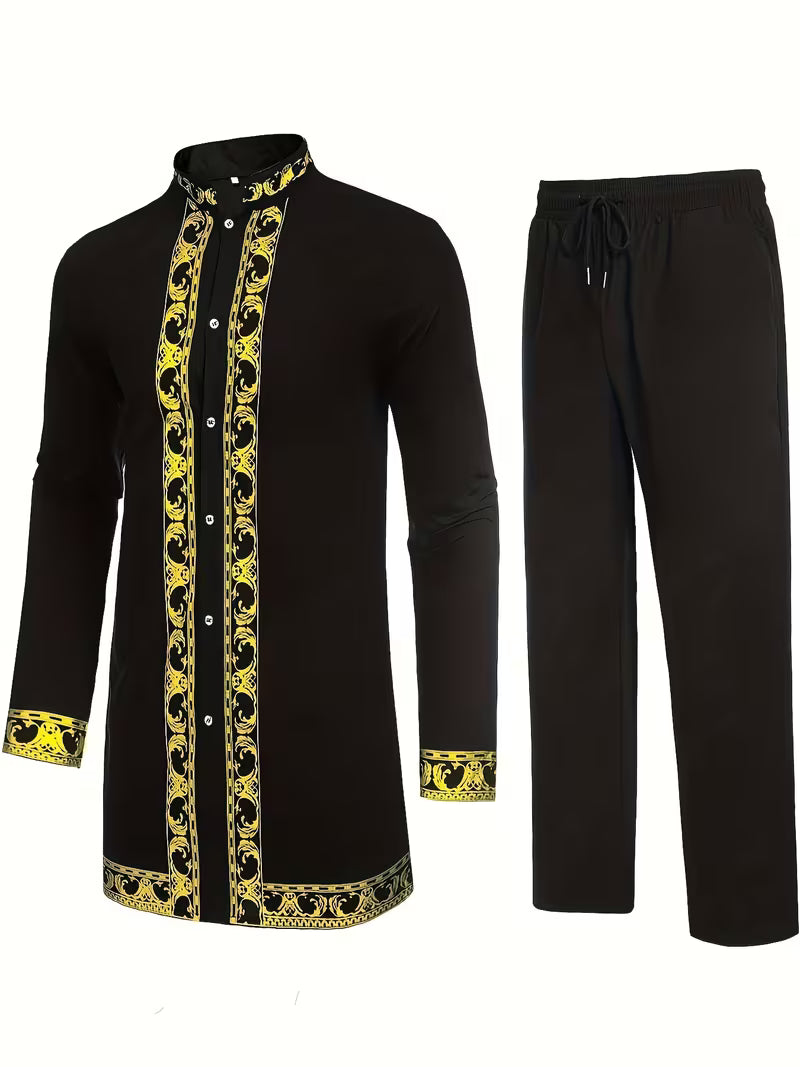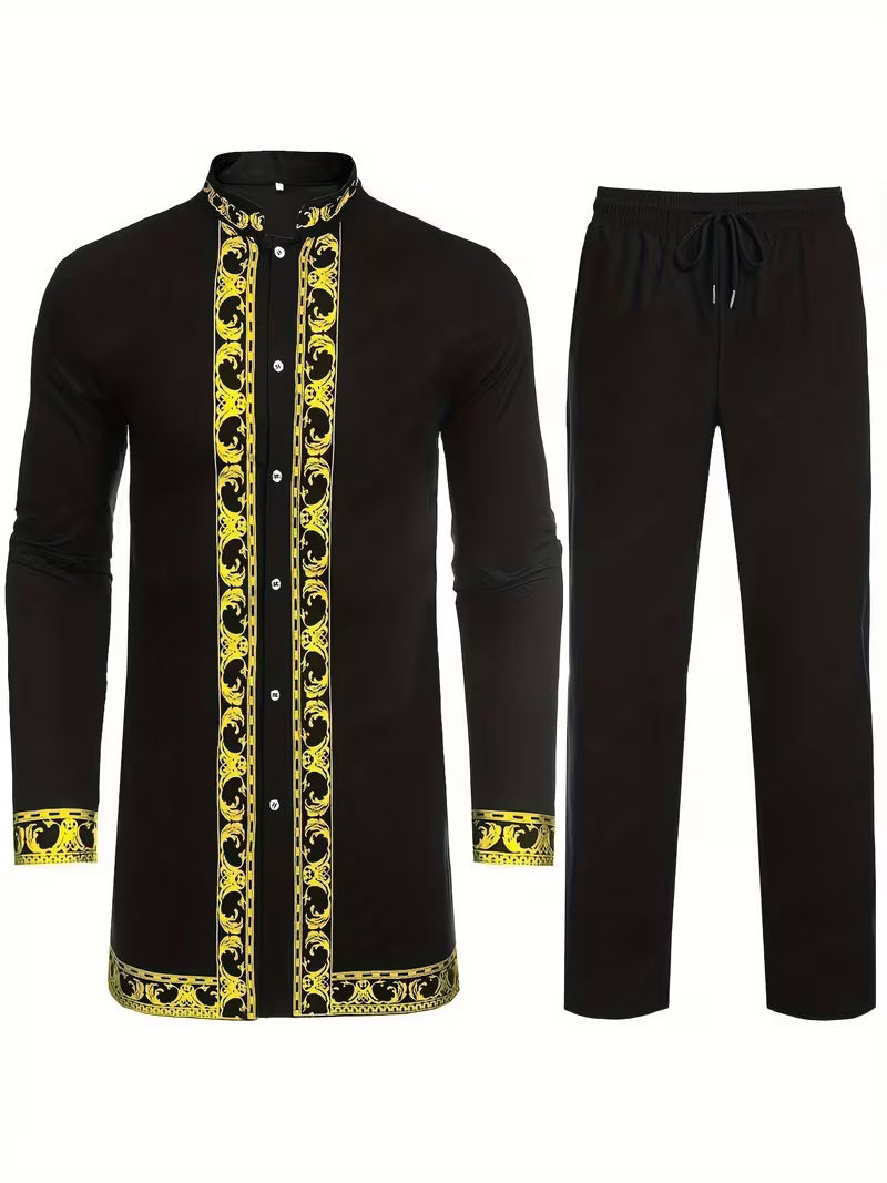 Black AndGold Baroque Pattern Men's Two-Piece Set