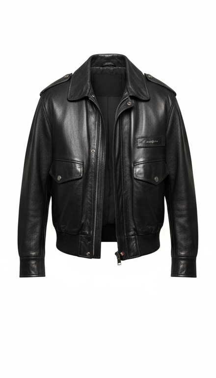 Black Glossy Leather Utility Jacket