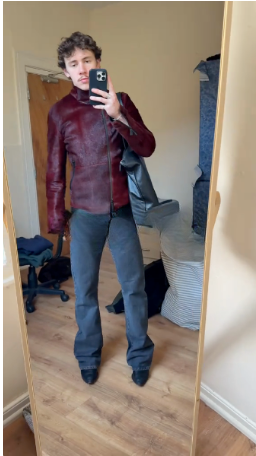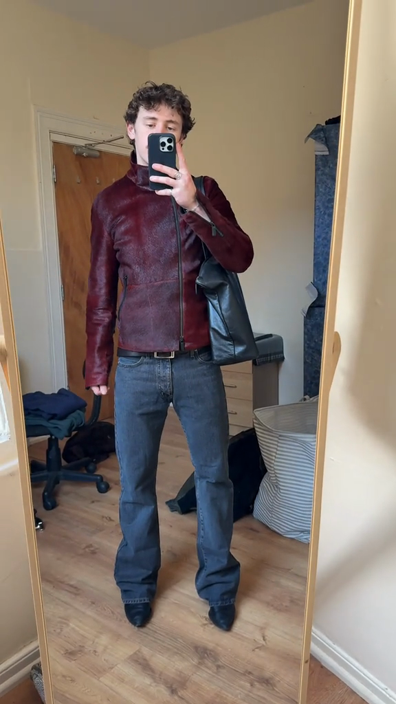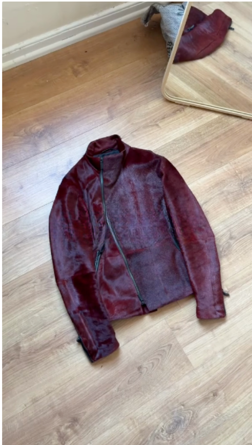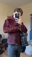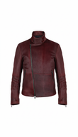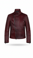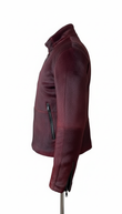 Burgundy Haircalf Leather Stand-Collar Jacket