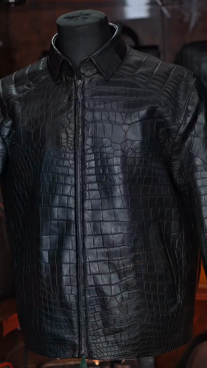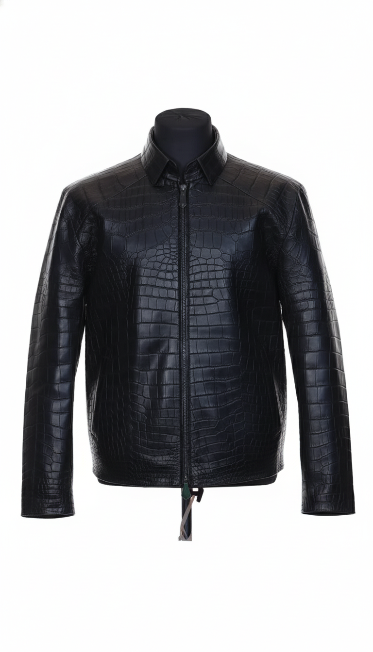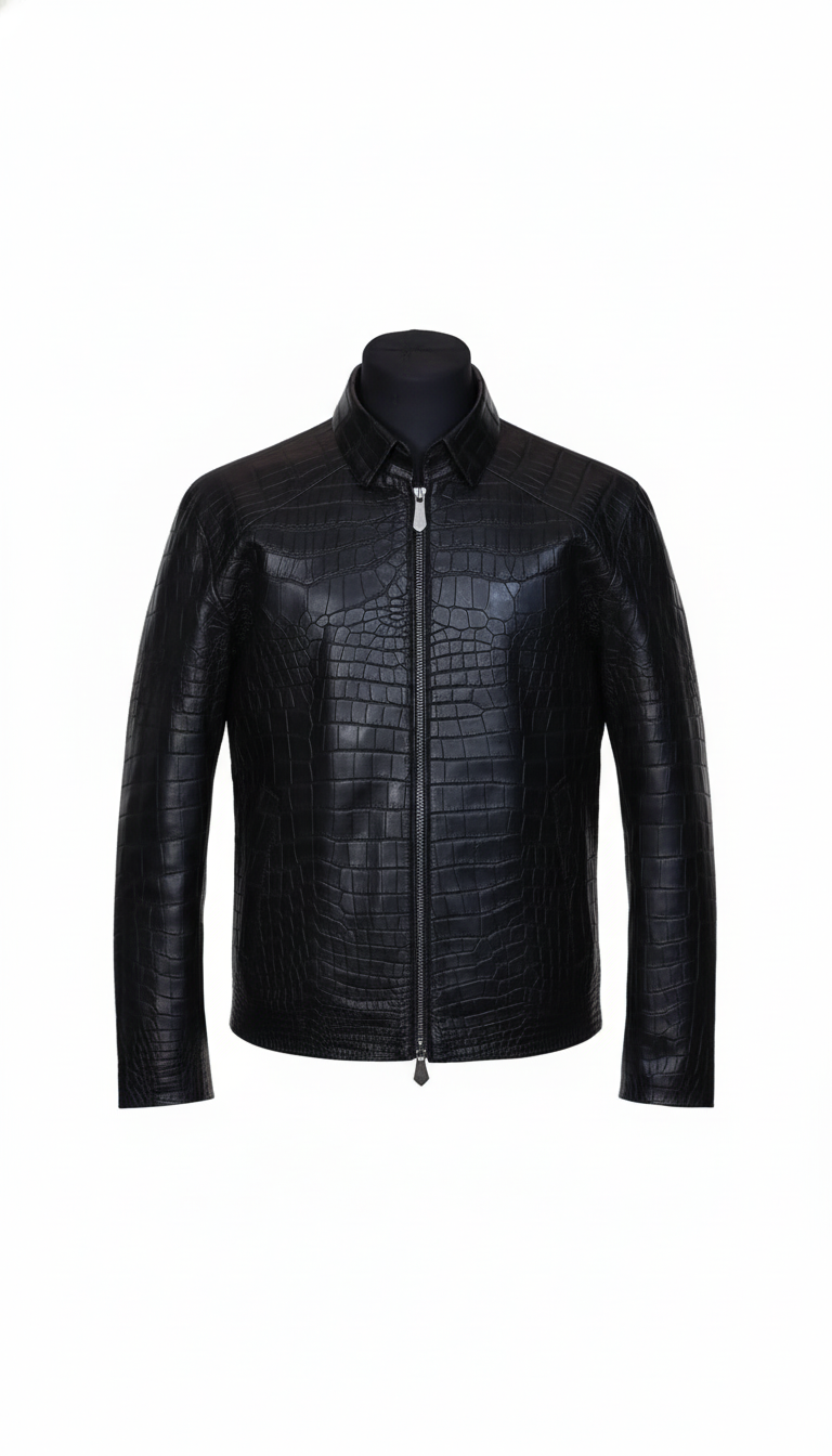 Croc-Embossed Leather Jacket – Slim Fit