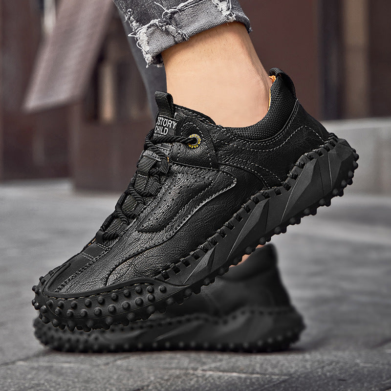 Welcome to explore the uniqueness of these men's shoes - "Effortless Strides, Foot Massage Marvel"! The sole features an innovative design with ultra-soft elastic large granules, providing a delightful and light experience with every step, while incorporating a magical massage effect.