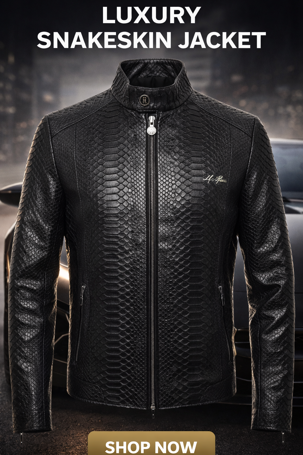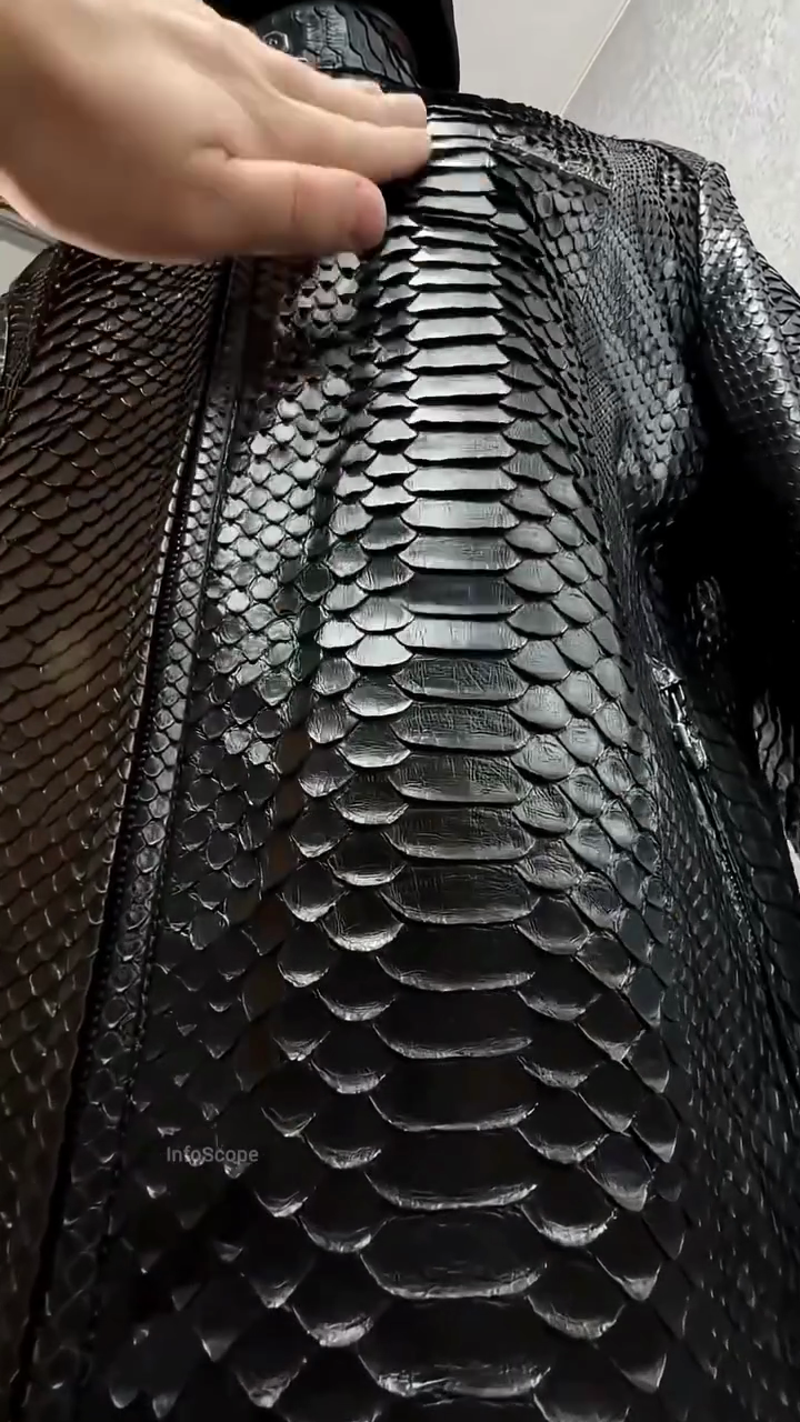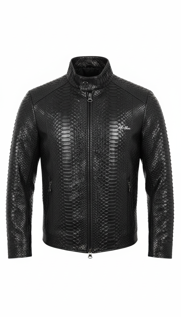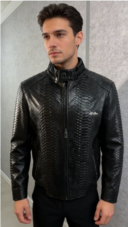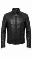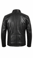 Black Snake Pattern Leather Bomber Jacket