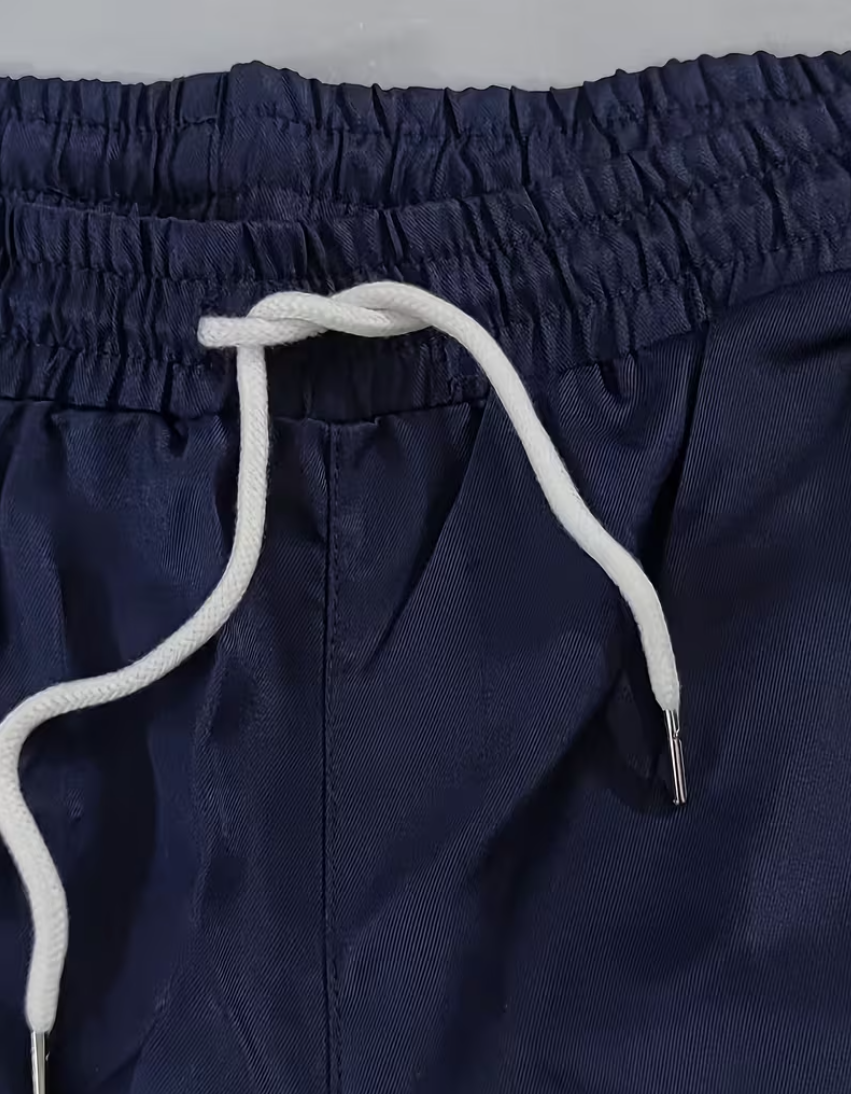 Closure: Button placket (top) + drawstring (trousers)