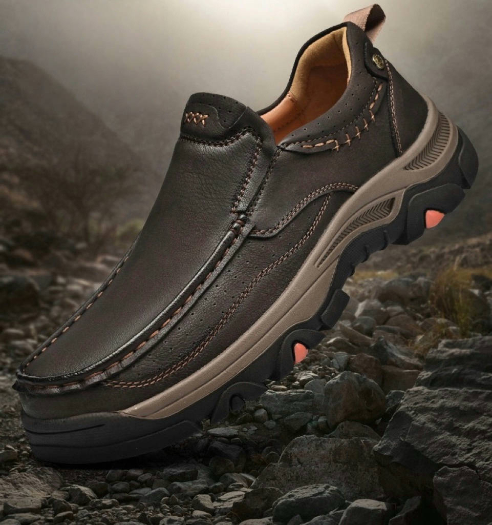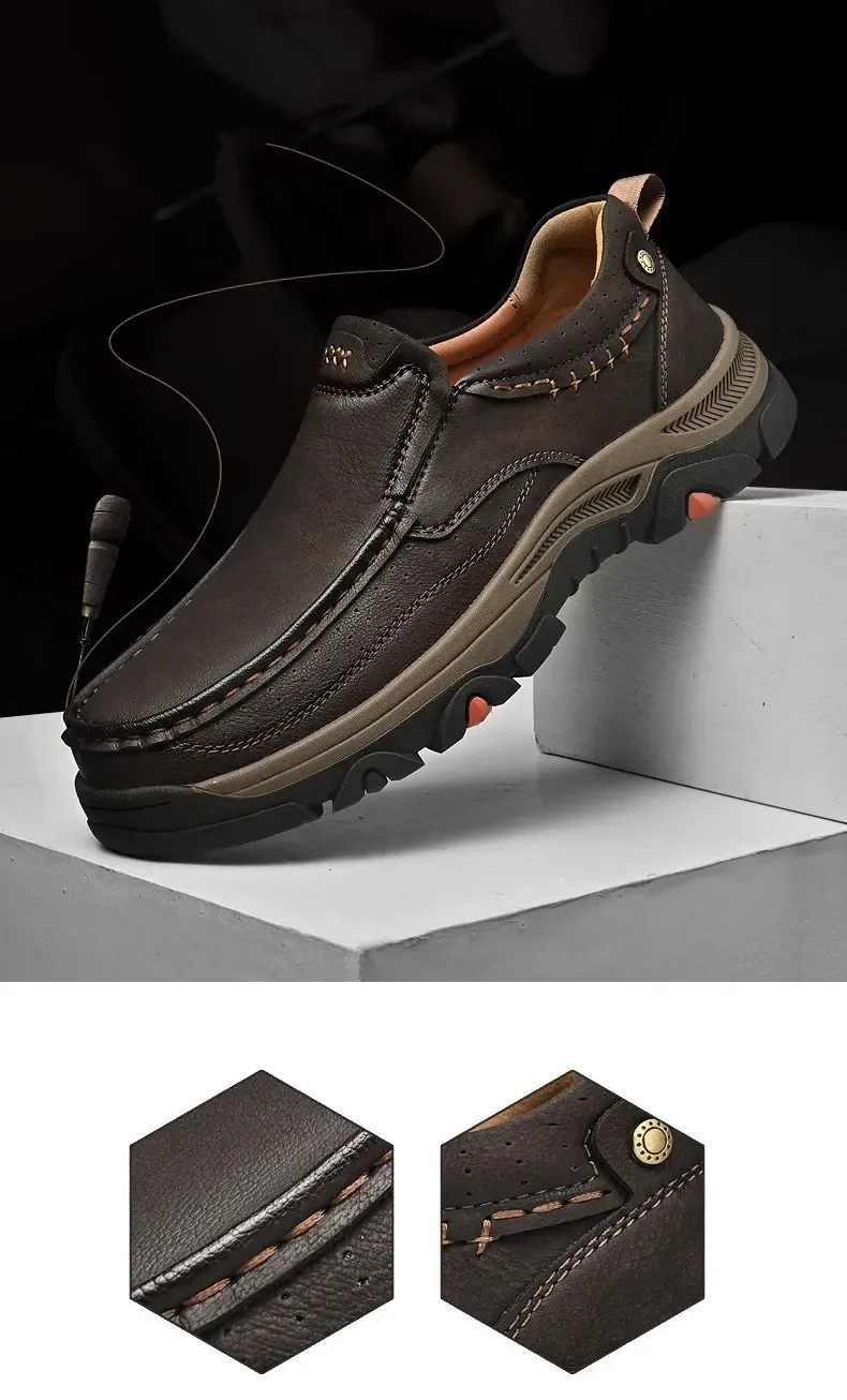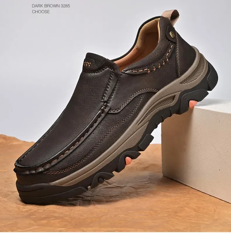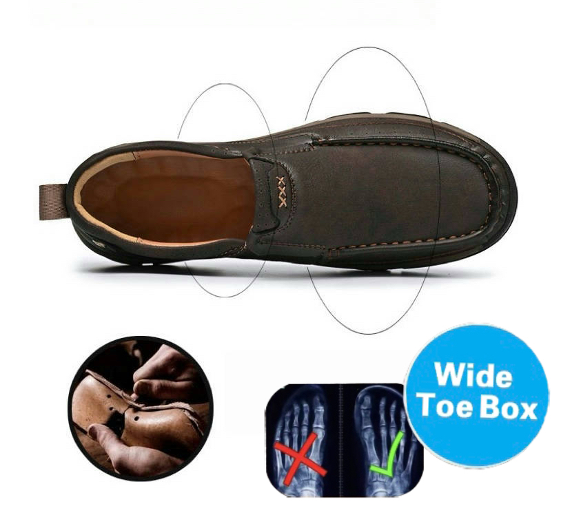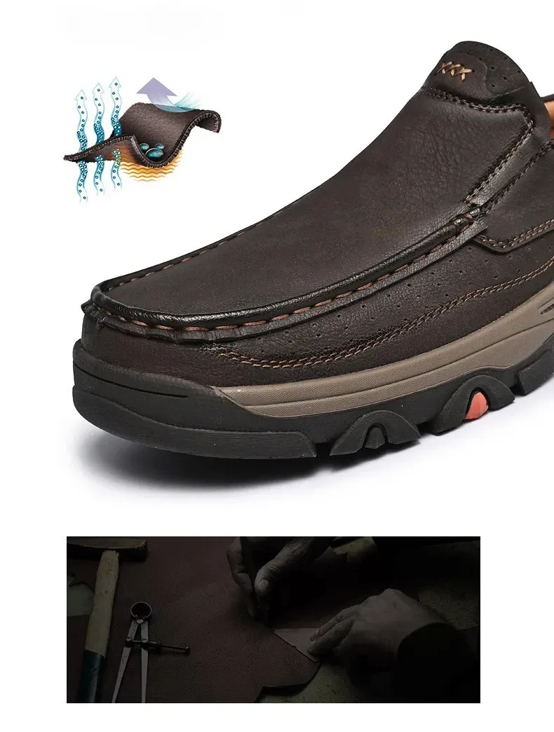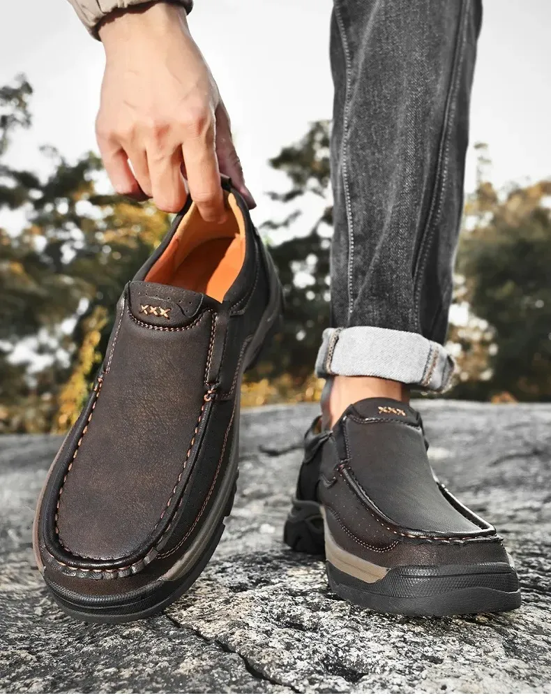 Men's Genuine Leather Outdoor Slip-On Loafers with Arch Support & Wide Toe Box