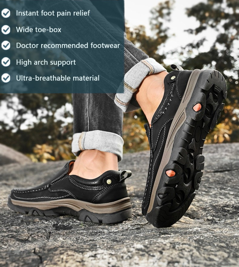Say goodbye to pricey doctor visits and custom insoles. These handcrafted loafers are designed to provide maximum comfort with every step. Featuring a thick, shock-absorbing sole that supports your entire foot, not just the heel, you’ll feel steady, cushioned, and pain-free—whether you're navigating city streets or exploring the outdoors.