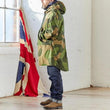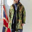 Ce que vous voyez maintenant, c'est un coupe-vent camouflage rare méticuleusement conçu par notre équipe de designers à travers de multiples itérations. Dotée d'un motif camouflage unique en vert clair, vert foncé et marron, cette veste dispose de deux poches pour les mains sur le devant, d'un cordon de serrage à la taille et d'une capuche à cordon de serrage intégrée. L'avant est orné de cinq boutons robustes, offrant à la fois durabilité et résistance. La longueur du design s'inspire de la silhouette des chemises pour hommes, créant une apparence à la mode et distinctive devant-court, dos-long.