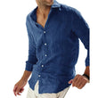 Chemise décontractée à manches longues en coton et lin pour homme, couleur unie, col à revers, respirante, 78653851Y