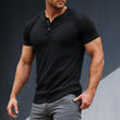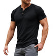 Nom du produit : T-shirt décontracté à manches courtes et col Henley en mélange de coton uni pour homme