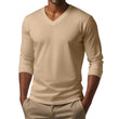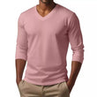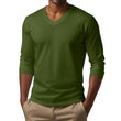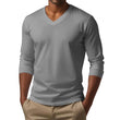 T-shirt décontracté à manches longues et col en V en coton mélangé pour homme