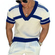 【24-hour shipping out】Men's Casual V-neck Striped Jacquard Slim Fit Knitted Short-sleeved Sweater T-Shirt 13072472M