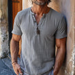 【Expédition 24 heures】T-shirt décontracté à manches courtes et col Henley gaufré pour homme 10629017M