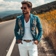 Introducing the Men's Classic Retro Casual Slim Fit Western Style Embroidered Suede Blazer, a sophisticated fusion of vintage cowboy charm and modern tailoring. This blazer is perfect for the man who desires to make a statement while enjoying the versatility of casual and semi-formal styles. Crafted from premium suede, it combines comfort with elegance, making it an indispensable addition to your wardrobe for any occasion.