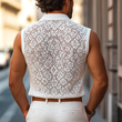 Men's Fashion Lace Lapel Sleeveless Casual Tank Top MTA1217E3Z