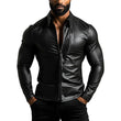 Nom du produit : Chemise en cuir à manches longues et revers pour homme avec fermeture éclair et coupe ajustée