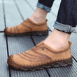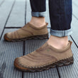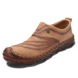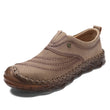 Crafted with a cow leather upper and breathable perforated design, these slip-on shoes keep your feet cool and dry. The flexible elastic opening ensures an easy fit while providing a secure, comfortable feel. The durable rubber outsole offers excellent cushioning, absorbing shock with each step. Paired with breathable, shock-absorbing insoles, they provide all-day comfort and support, making them perfect for work, travel, or even as home slippers. Ideal for any occasion or terrain.