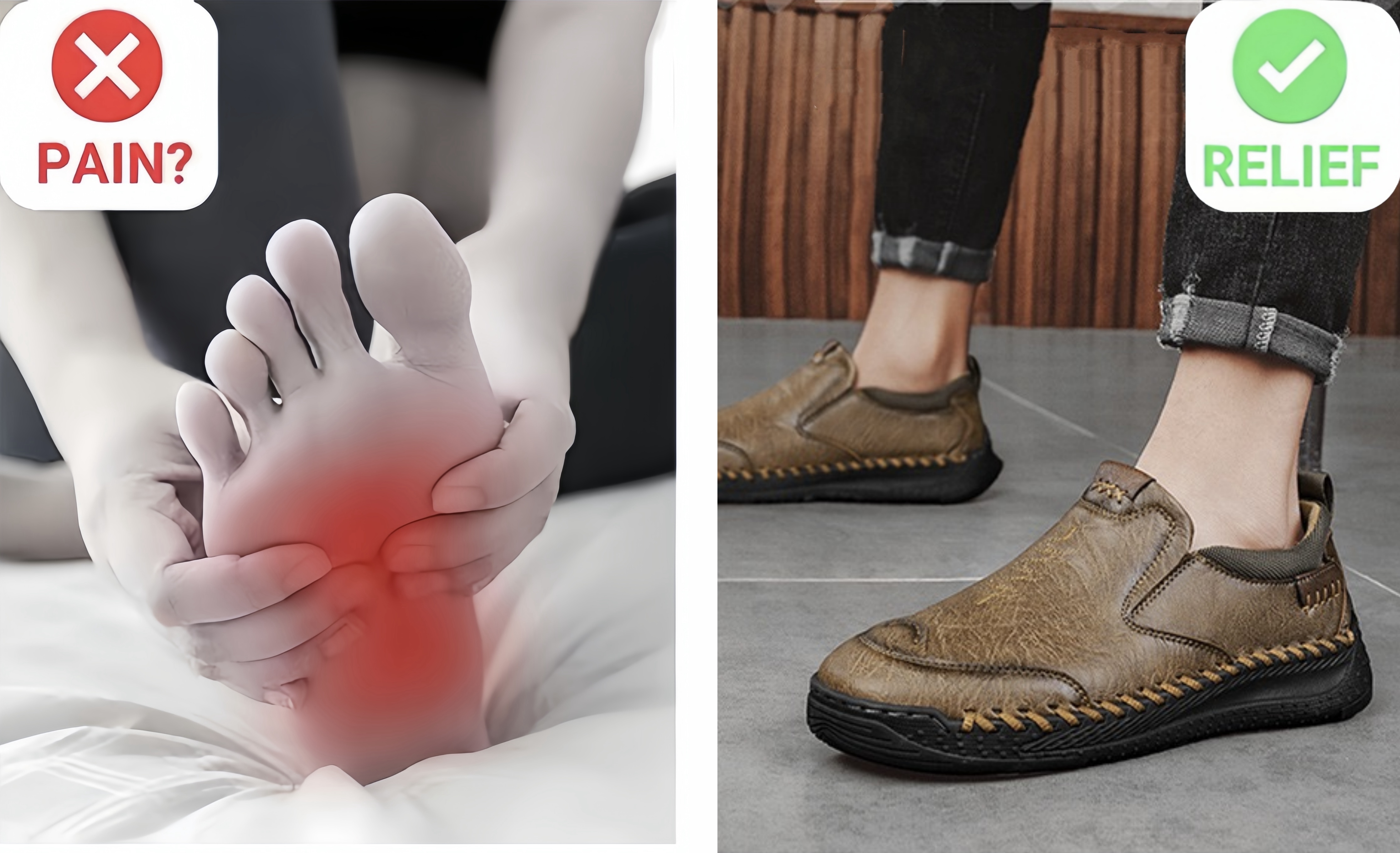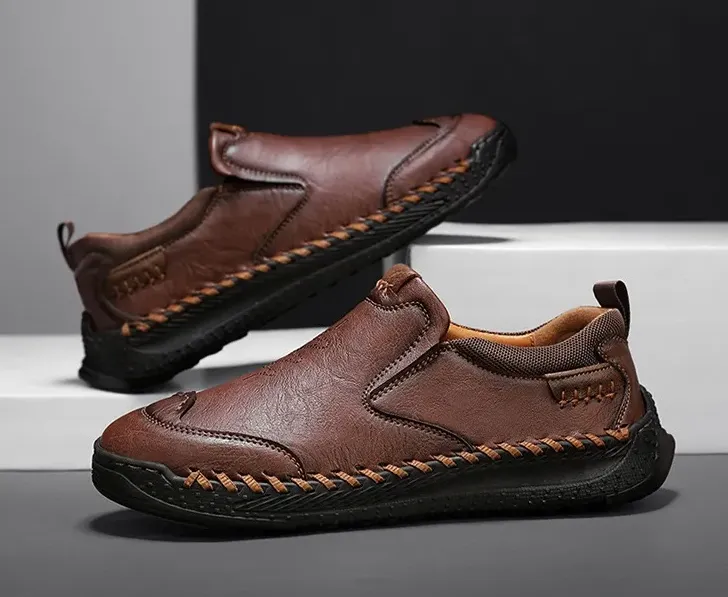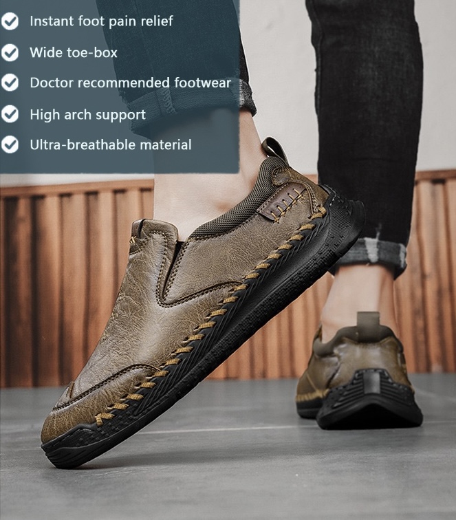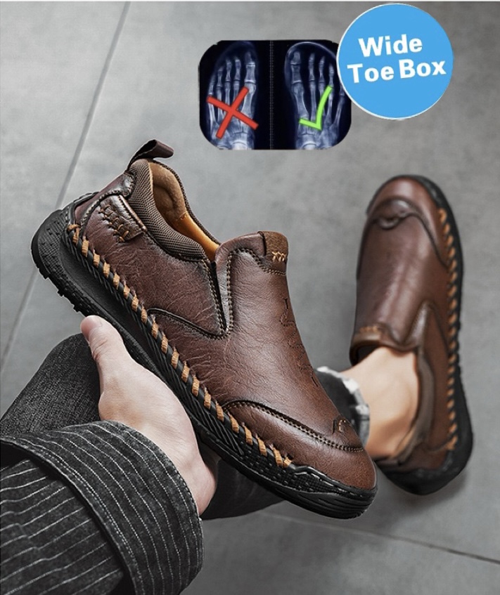 Men's Orthopedic Leather Loafers - Wide Toe Box, Slip-On Comfort