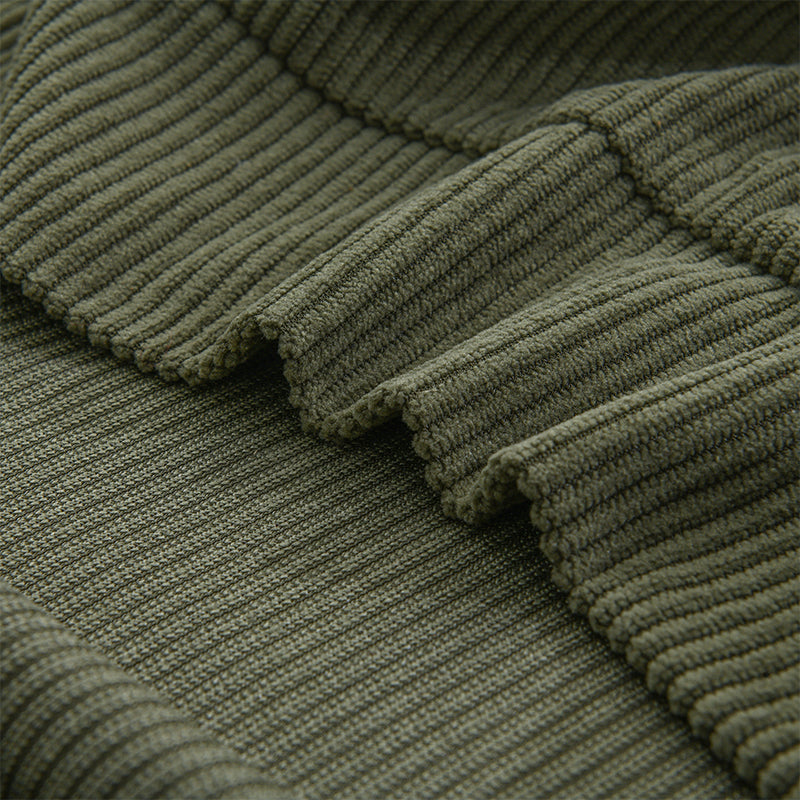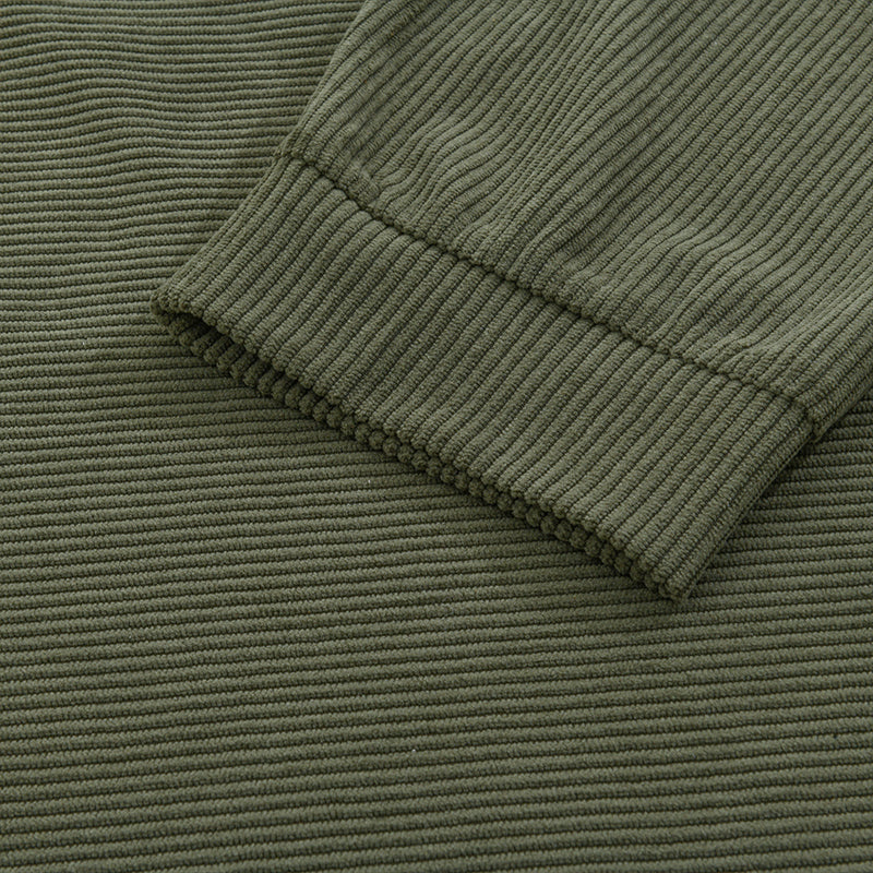 La chemise à manches longues est fabriquée en velours côtelé doux. Le velours côtelé est un tissu côtelé durable. Ce tissu est surtout connu pour son motif côtelé unique, sa texture épaisse, son toucher doux, son apparence confortable et son aspect usé. Lorsqu'il est tissé dans une variété de largeurs par les producteurs de velours côtelé, il est ensuite transformé en blazers. Les historiens du tissu pensent que le velours côtelé est né vers 200 après J. -C. d'un tissu égyptien appelé futaine. Aujourd'hui, le velours côtelé a regagné en popularité.