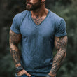 【24-hour shipping out】Men's Retro Casual Shabby Printed V-Neck Short Sleeve T-Shirt MTA2555D1TO