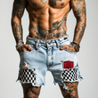 Whether you're hitting the streets or hanging out with friends, the Men's Ripped Check Denim Shorts offer a versatile and trendy option that's sure to turn heads. Elevate your wardrobe with these fashion-forward shorts, designed to keep you comfortable and stylish all season long.