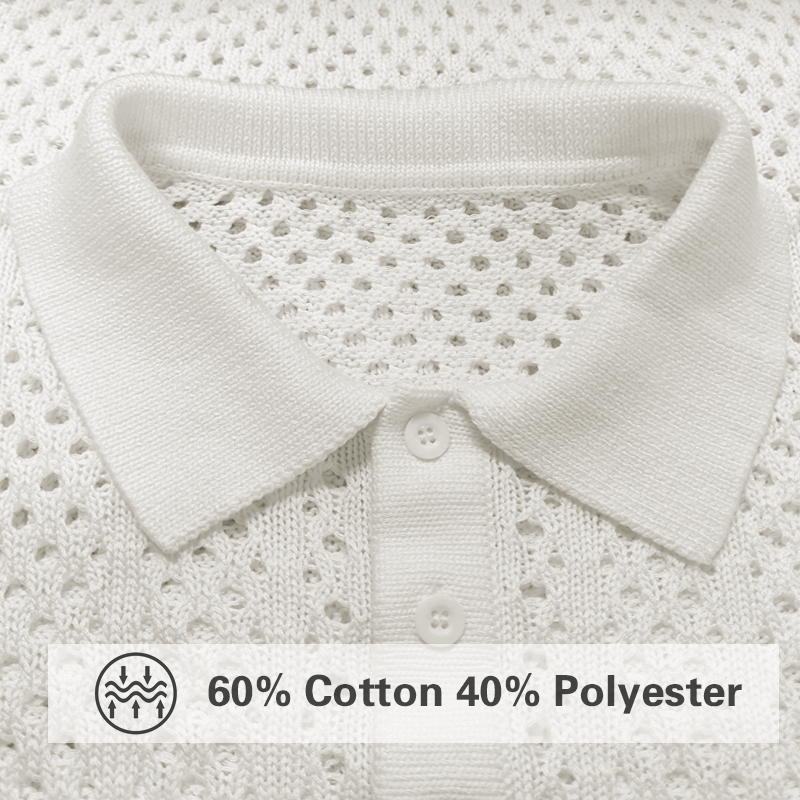 Product Name: Men's Solid Hollow Out Plaid Knit Lapel Short Sleeve Polo Shirt