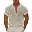 Product Name: Men's Solid Knit Hollow Henley Collar Short Sleeve T-shirt