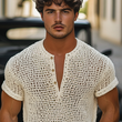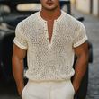 This men's solid knit hollow Henley collar short sleeve T-shirt combines classic design elements with modern details. Its comfortable fit and subtle hollow pattern make it perfect for casual outings, layering, or relaxing weekends, helping you look stylish while feeling comfortable.
