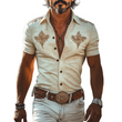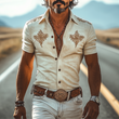 Channel classic Western heritage with a modern edge in the Men's Spring and Summer Retro Western Cowboy Style Suede Embroidery Slim Lapel Short-Sleeved Shirt. This standout piece blends traditional cowboy design with contemporary tailoring and intricate embroidery, delivering a sharp, seasonal look that’s both rugged and refined.