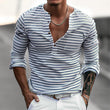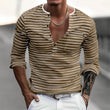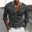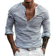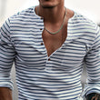 T-shirt décontracté à manches longues et col Henley rayé pour hommes 00046965Z
