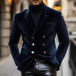 Description du produit pour Blazer croisé à revers pointus en velours vintage élégant pour homme