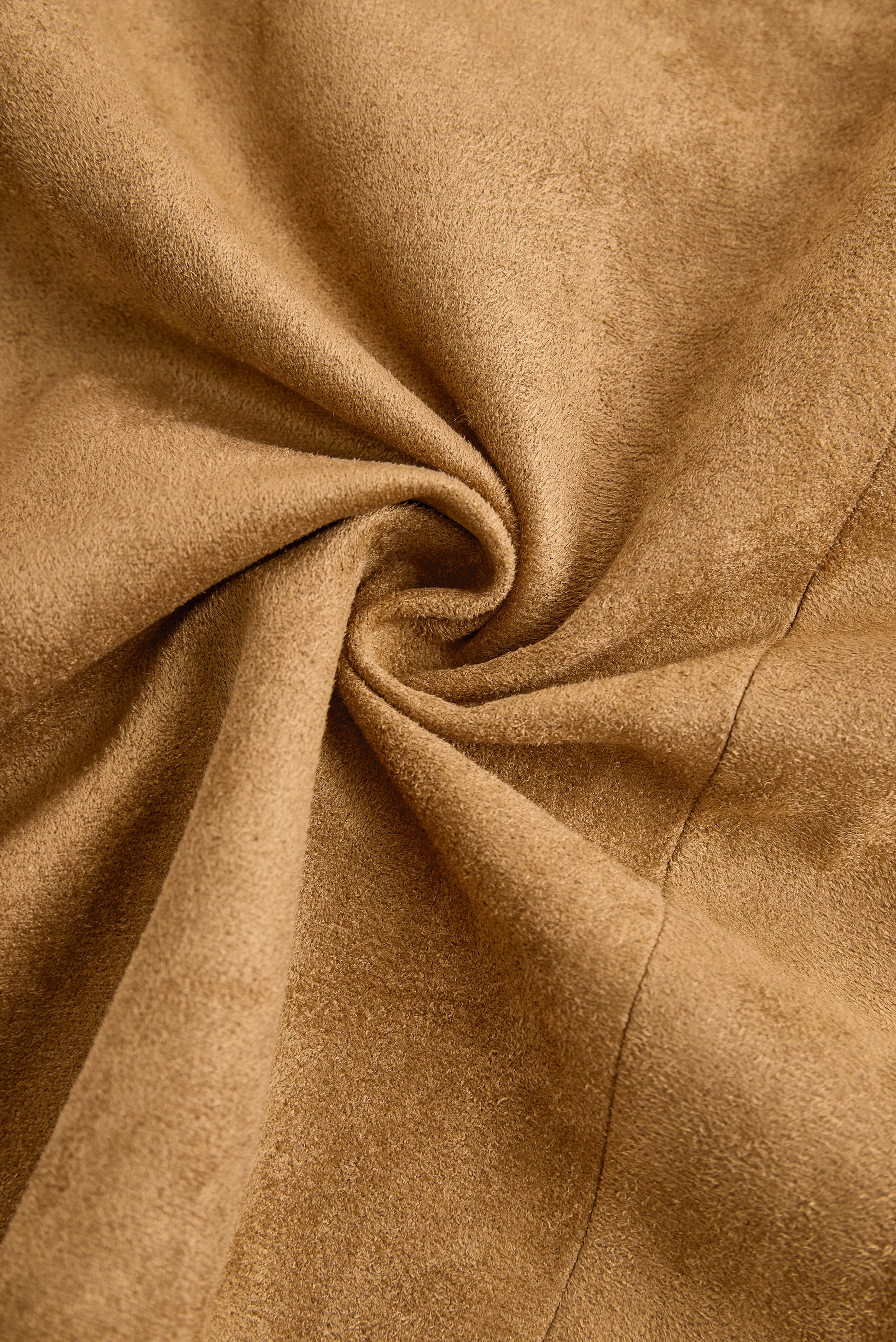 Col en polaire pour plus de chaleur : Le col doublé en polaire offre davantage de chaleur et de confort, ce qui rend ce manteau idéal pour les temps plus froids. La polaire douillette ajoute un contraste élégant au corps en daim, améliorant à la fois le confort et l'attrait visuel.