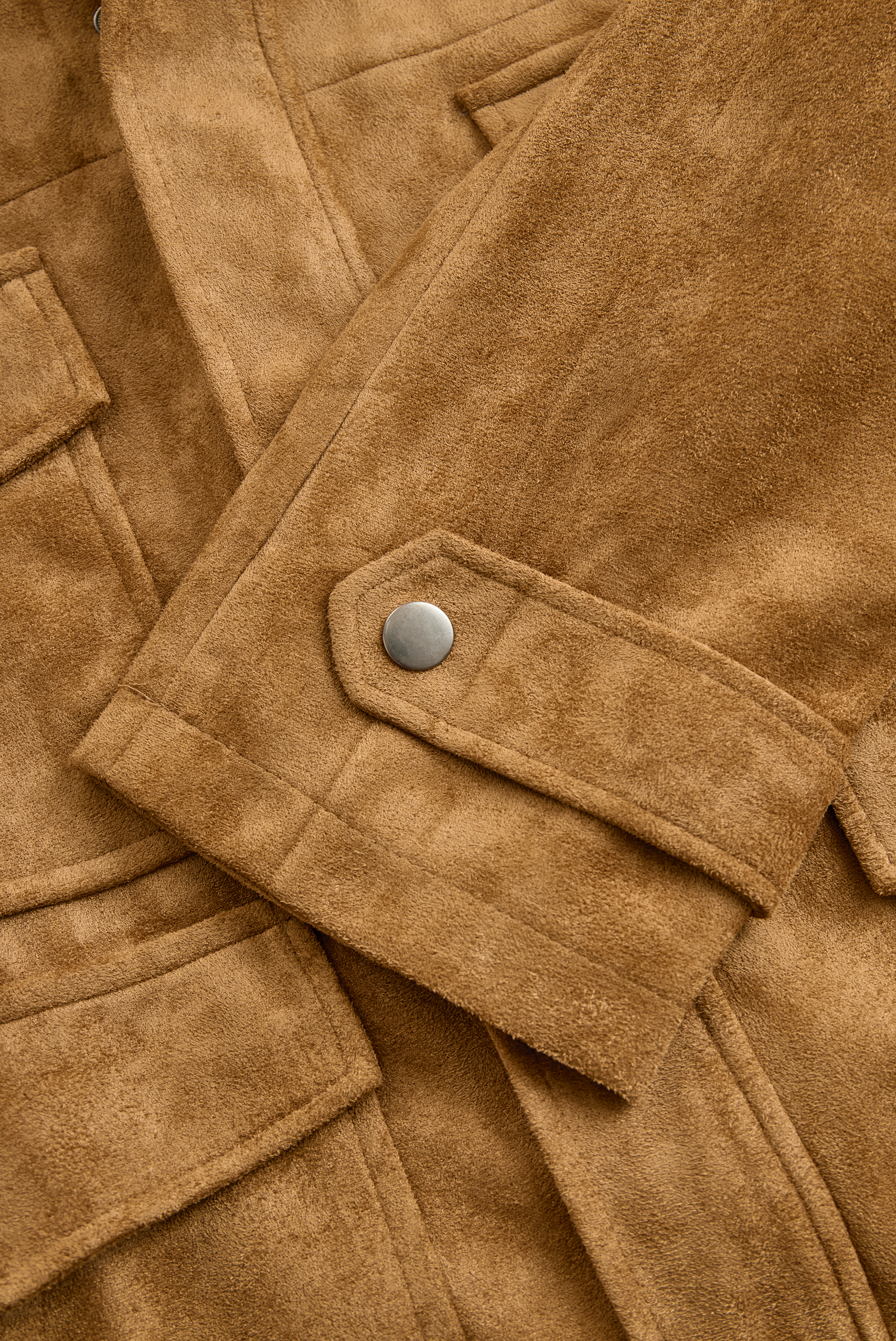 Finition en daim vintage : Le manteau est fabriqué en daim de première qualité, offrant une texture et une finition riches d'inspiration vintage. Le toucher doux du daim donne au manteau un air de luxe tout en conservant son attrait robuste.