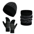 Description du produit pour l'ensemble trois pièces bonnet, écharpe et gants tricotés chauds pour hommes