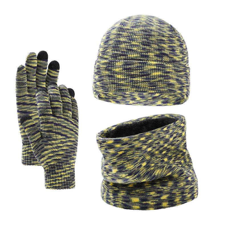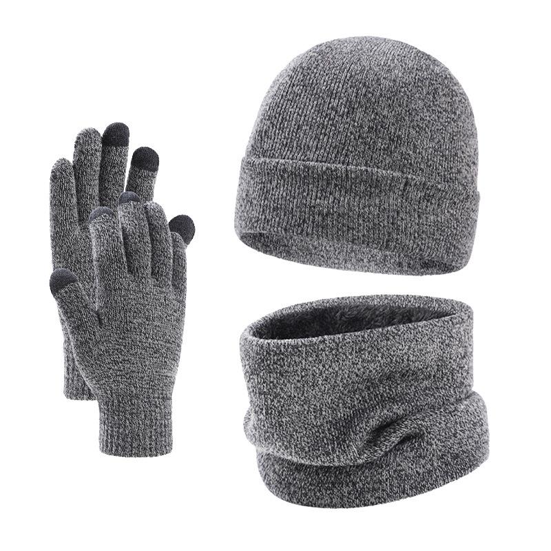 Men's Winter Plus Velvet Hat Scarf Gloves Three-piece Knitted Hat 11161881K