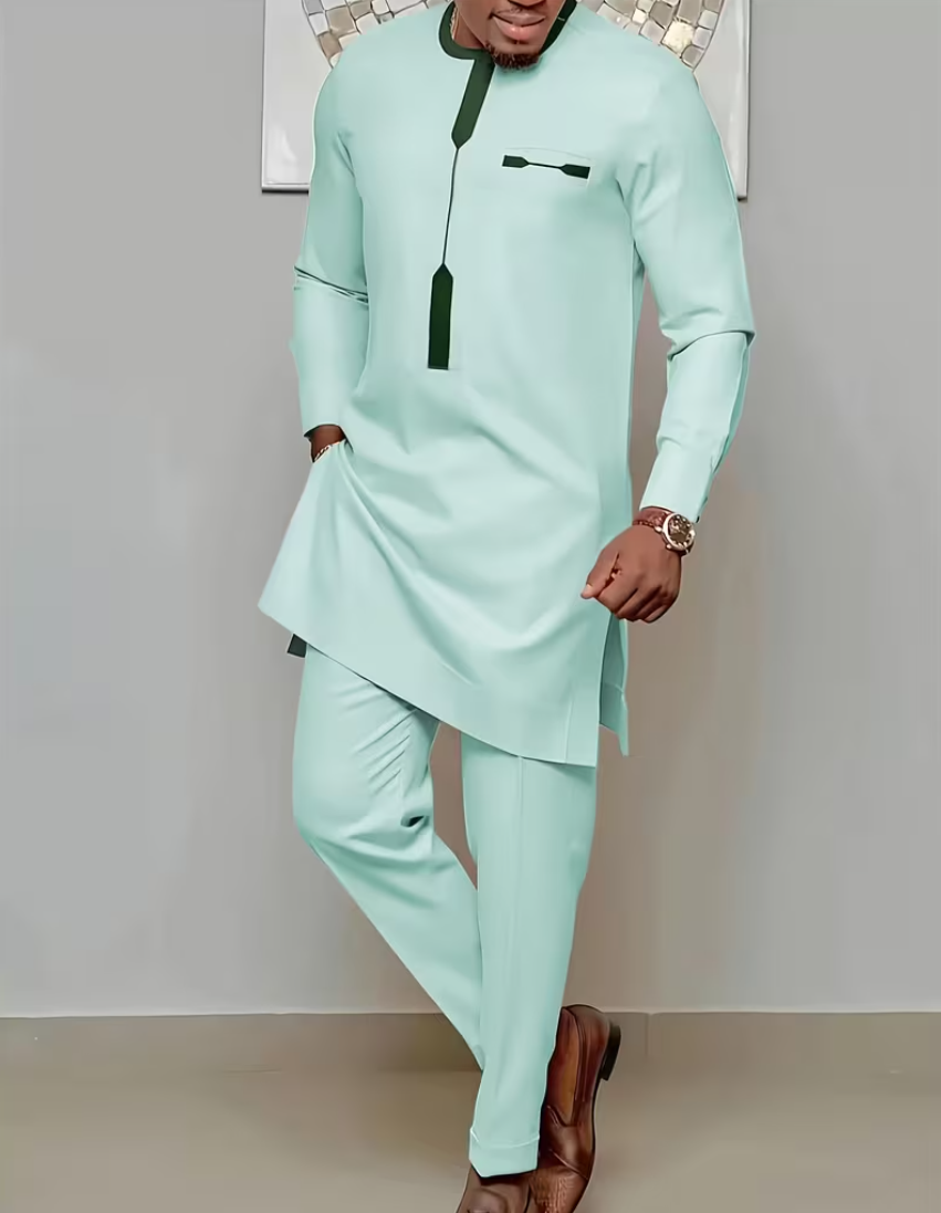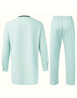 This mint green suit will add a pop of color to your sophisticated casual look. Crafted from a smooth mint green fabric and accented with stylish dark green details (collar, placket, and pockets), it cleverly blends a soft hue with a modern feel. Whether it's a semi-formal party, cultural event, or an elegant day out, it offers a comfortable wearing experience while maintaining a refined and fresh image. Wear this outstanding suit to exude a capable and elegant aura, confidently handling any occasion!