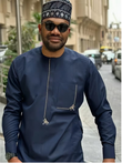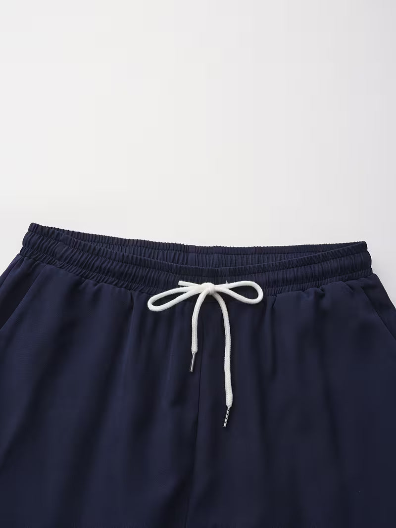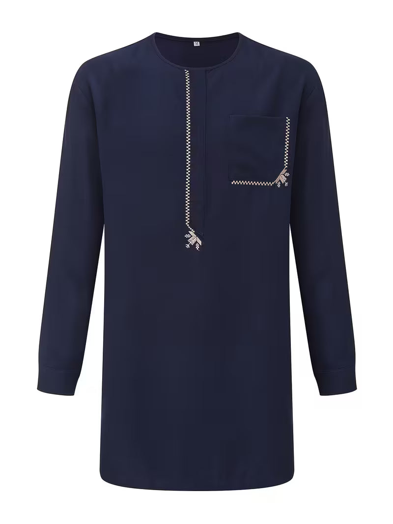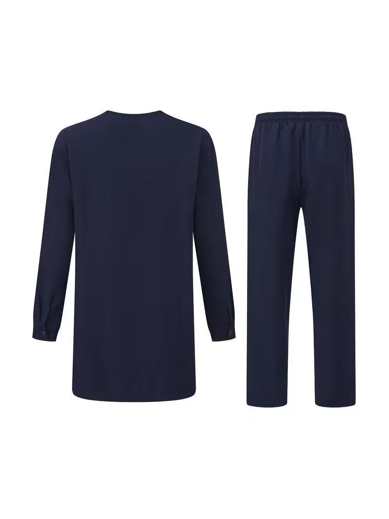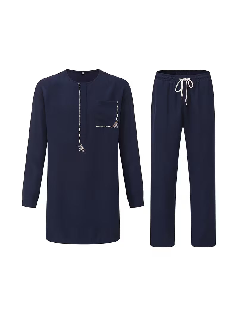 Navy Blue And White Accent Men's Traditional Two-Piece Set