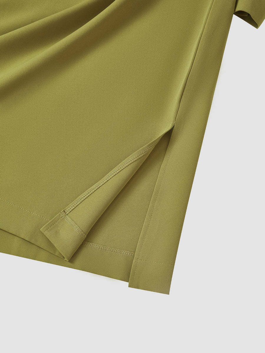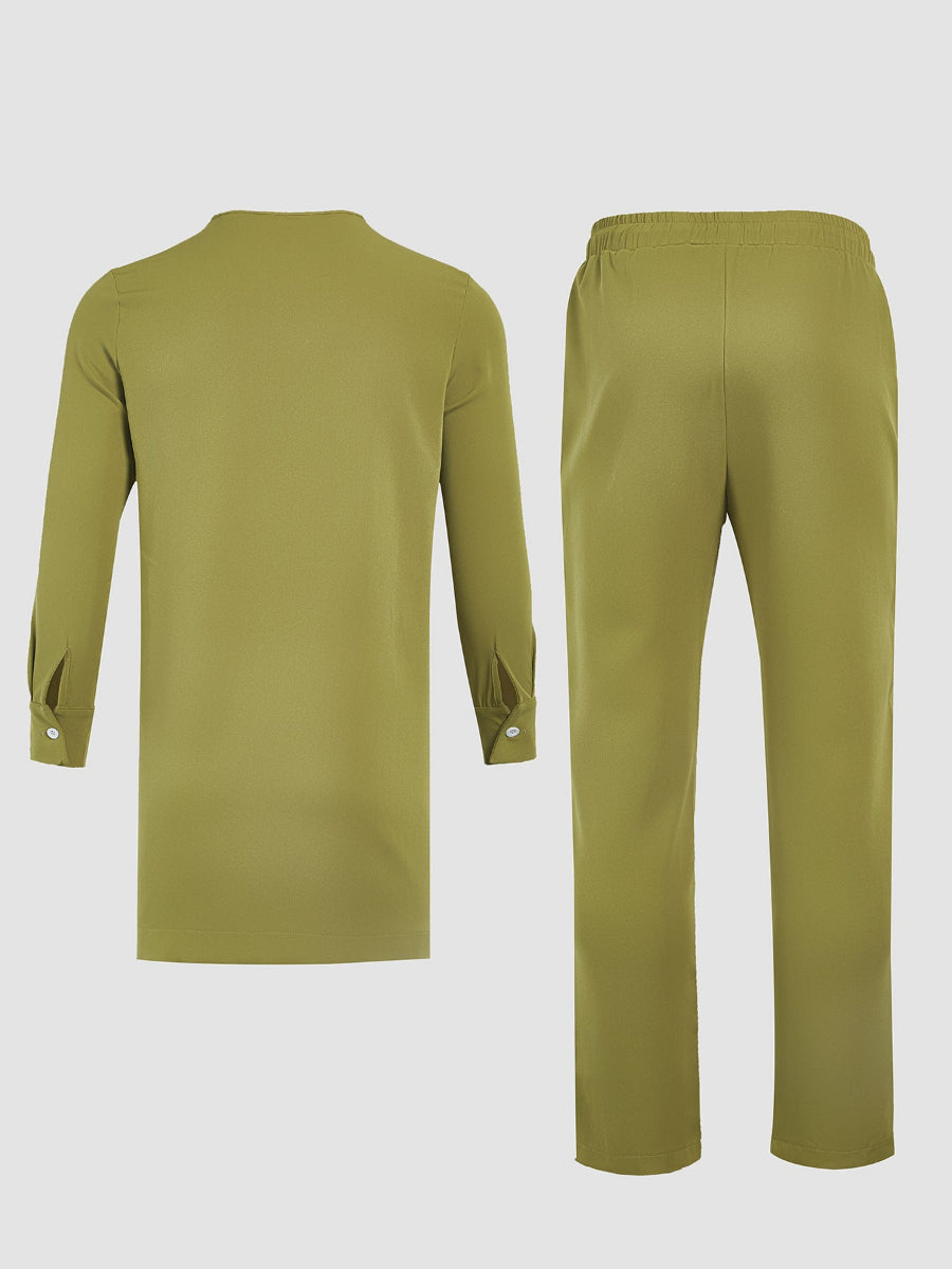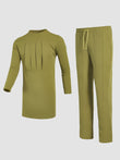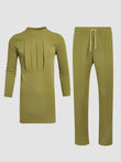 TACOHEAL Plus Size Casual Plain Green Folded Design Men's Set