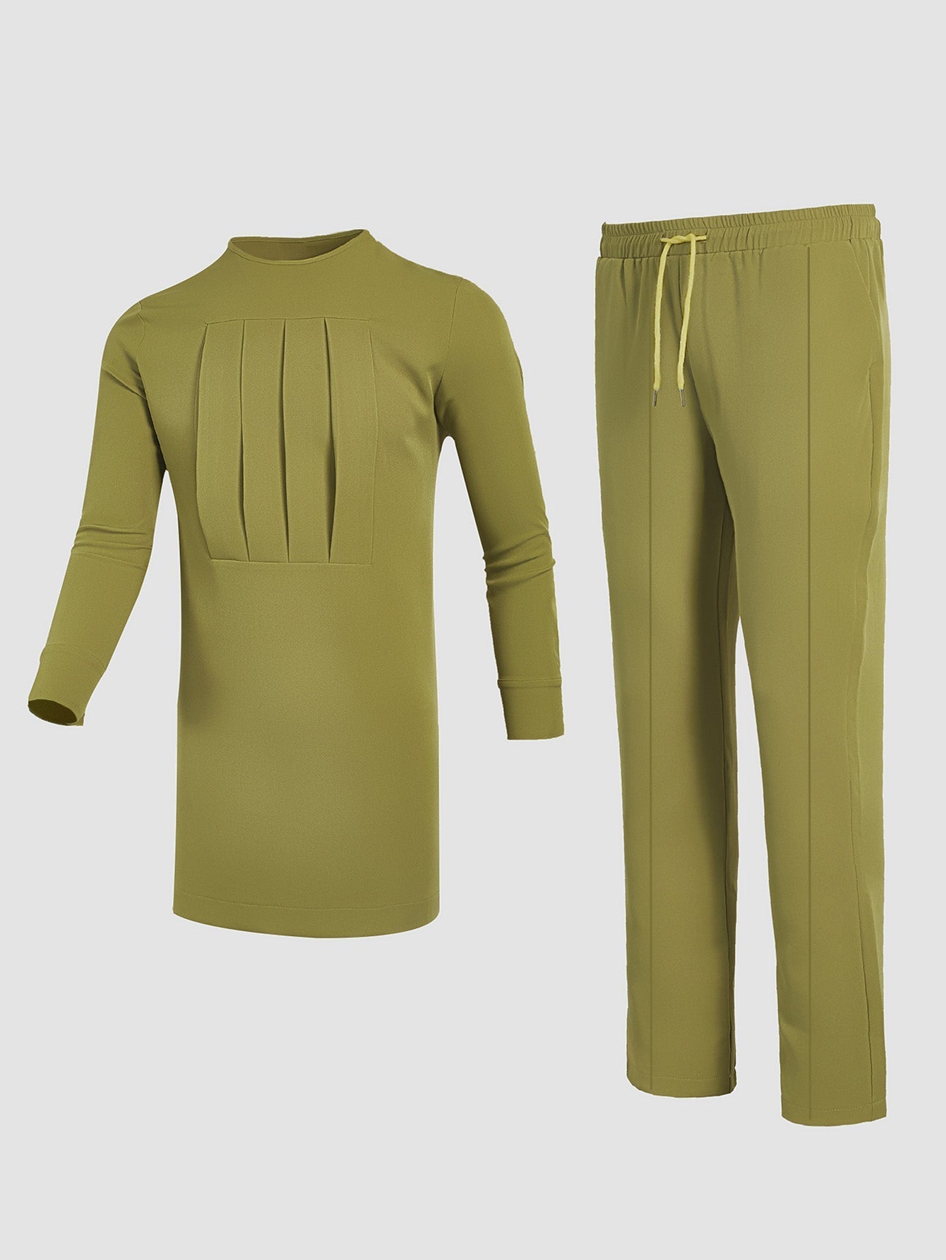 Get ready to stand out in style with this plus size casual men's set! Featuring a vibrant green color and a unique folded design, this set is sure to turn heads. Perfect for any casual occasion, it offers both comfort and style for the modern man.