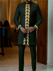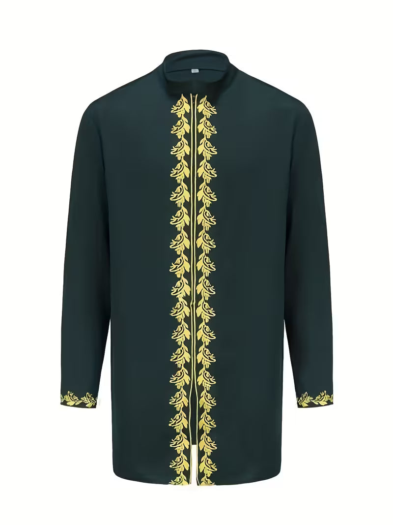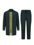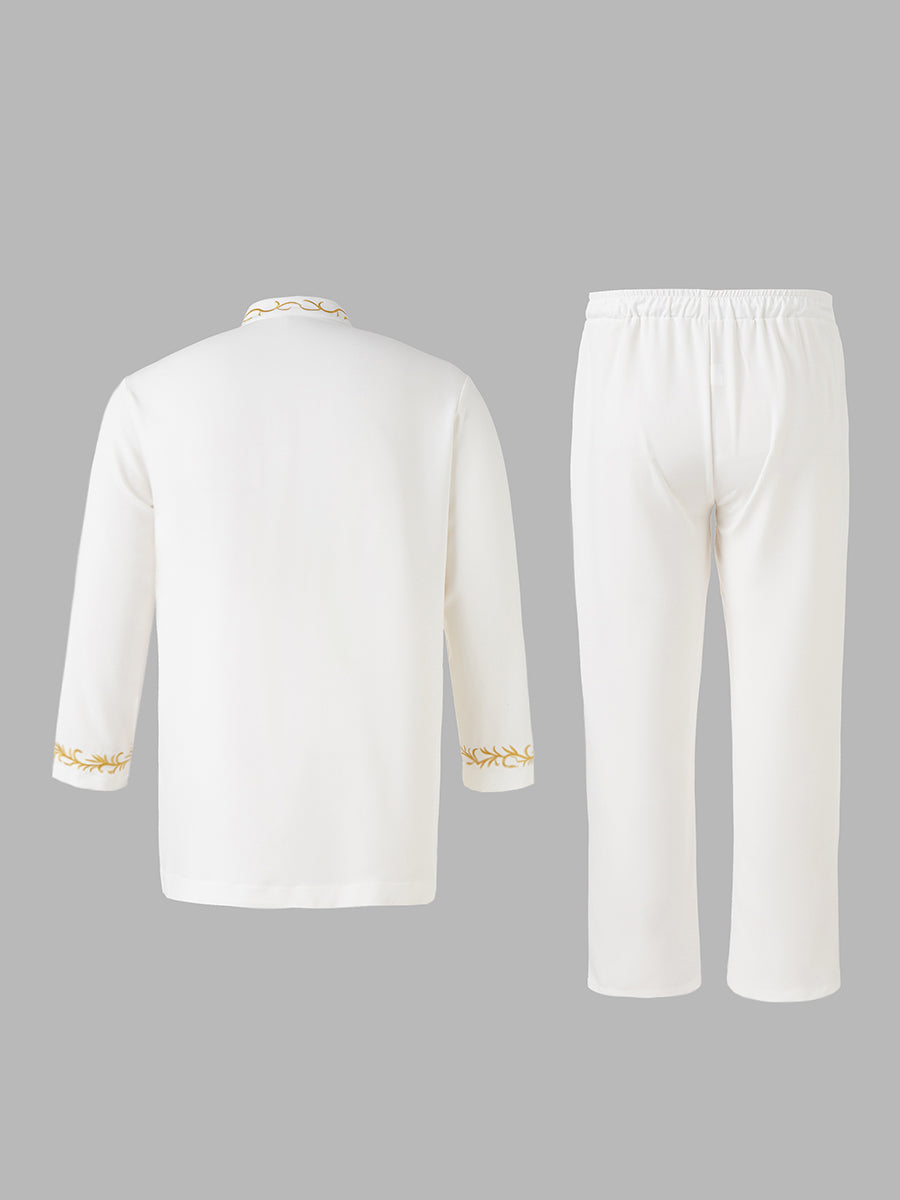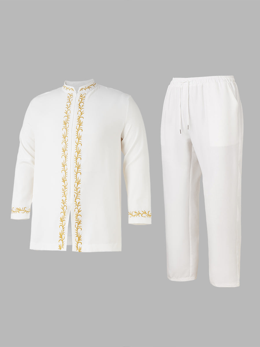TACOHEAL Plus Size Embroidered Zip-Up Long Sleeve Men's Pants Set