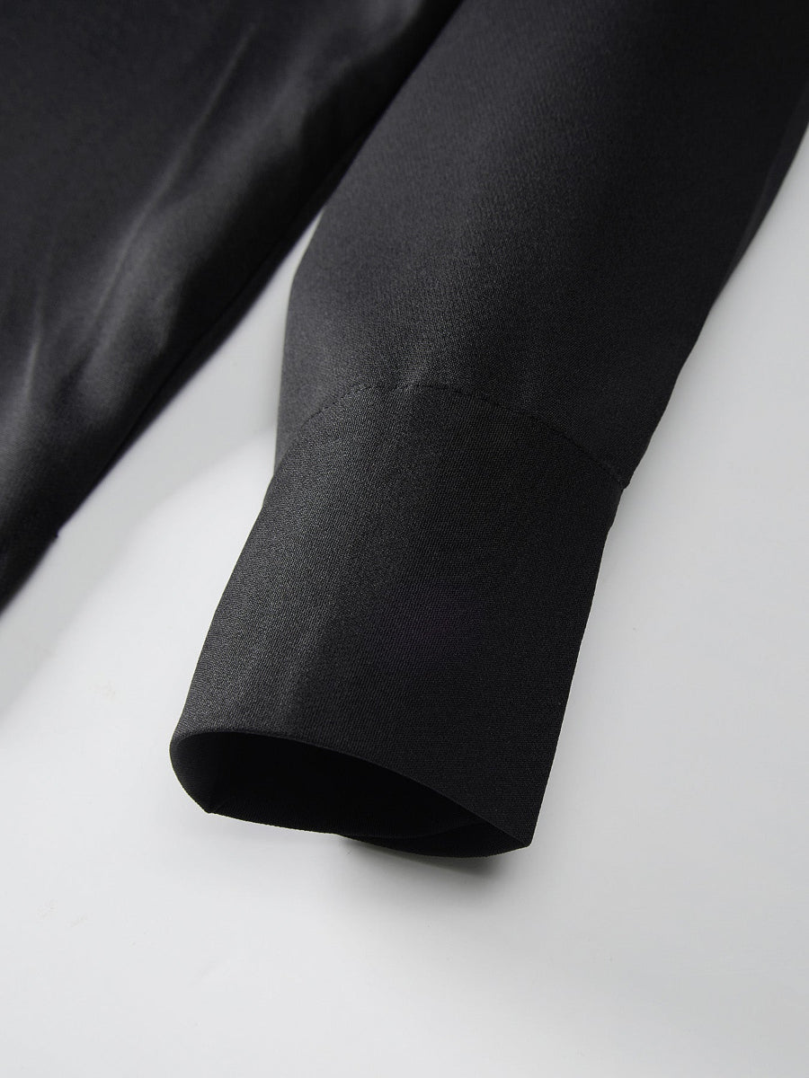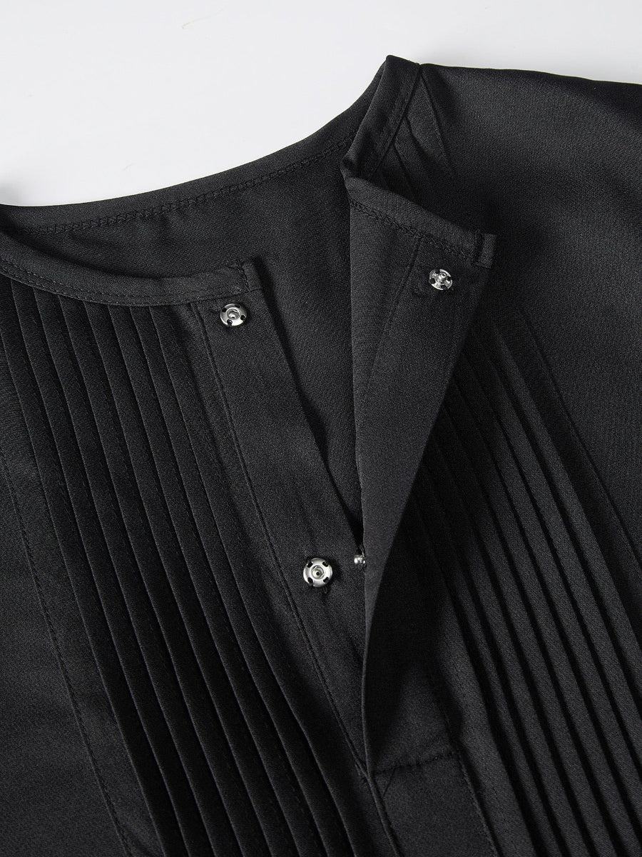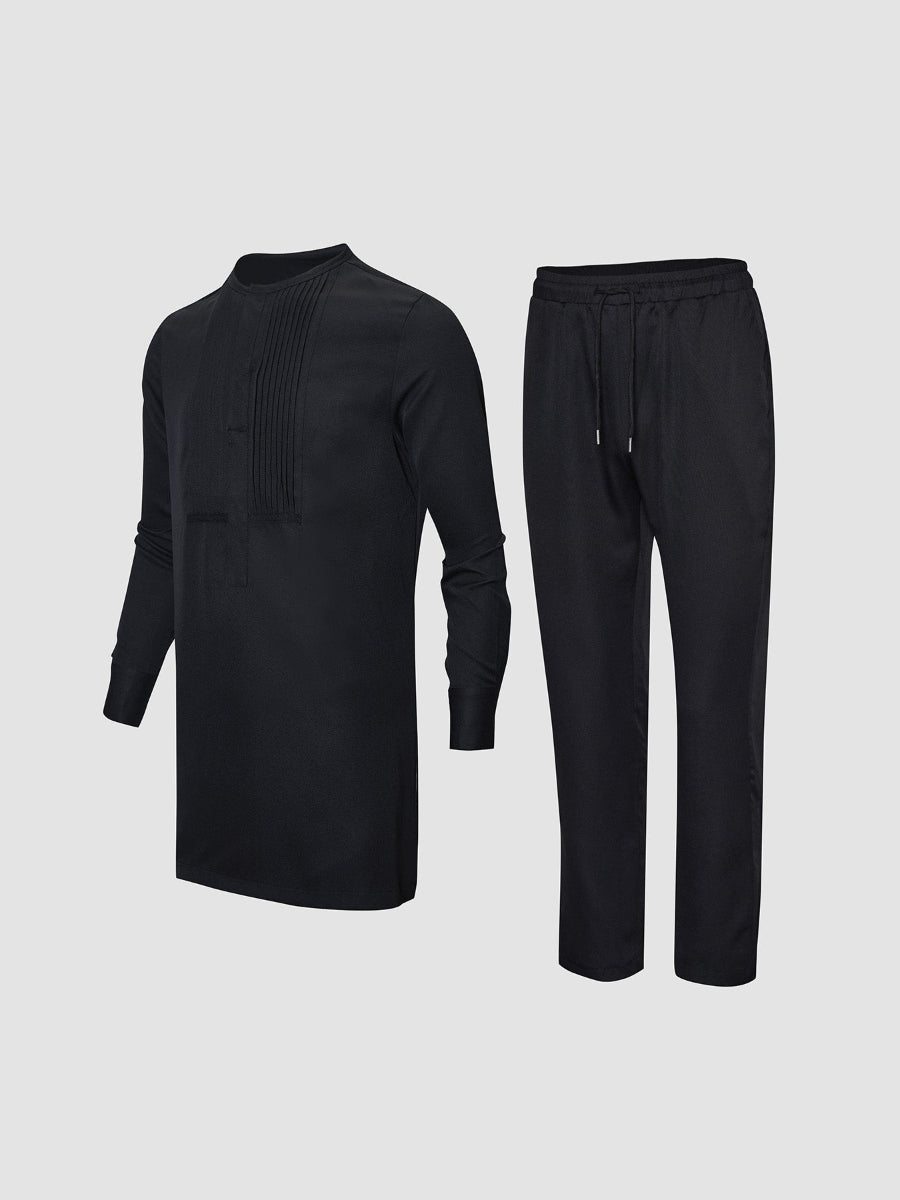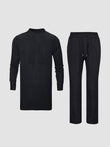 TACOHEAL Plus Size Pleated Black Long Sleeve Men's Set