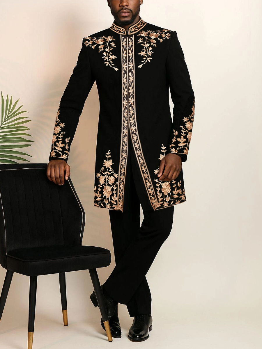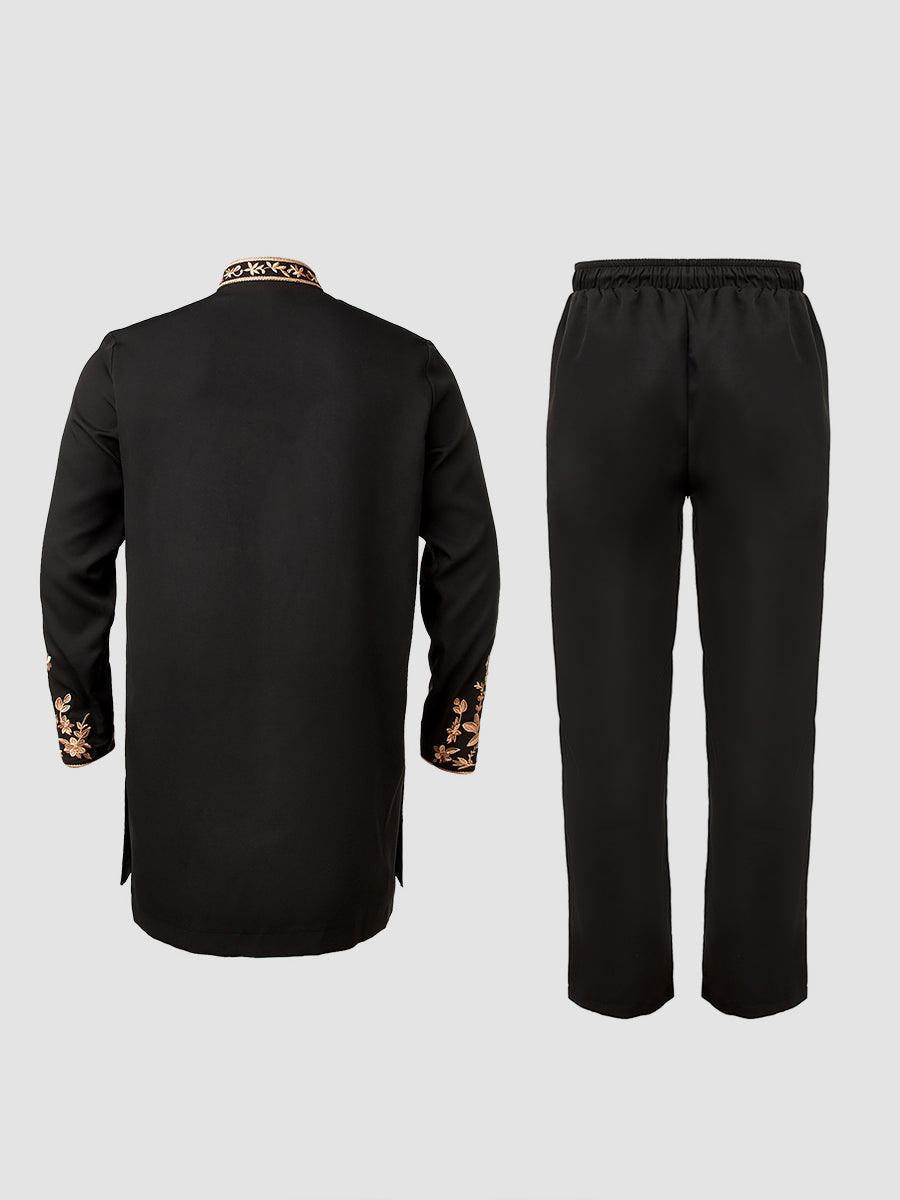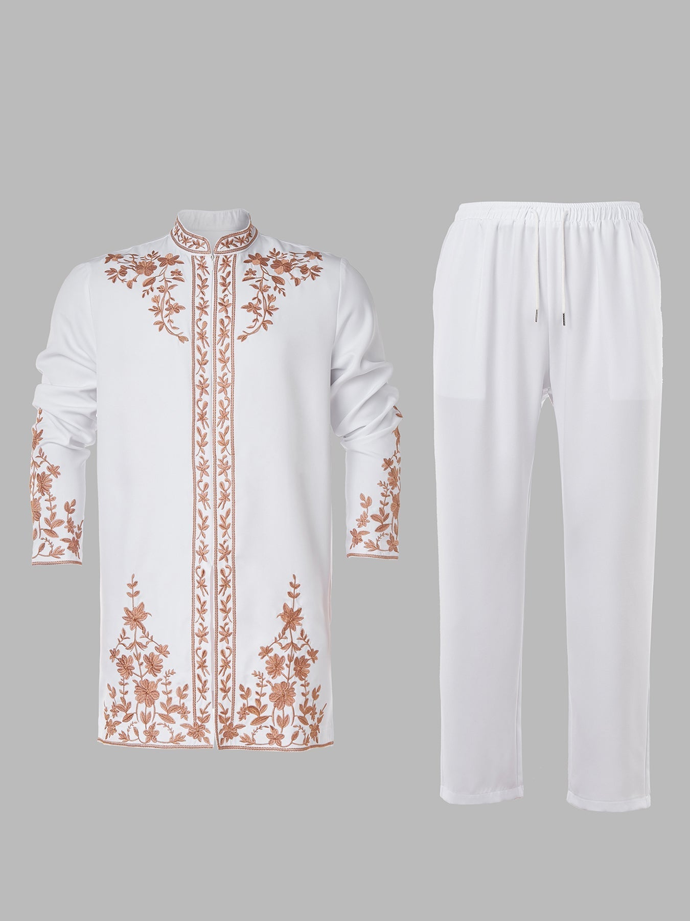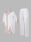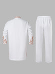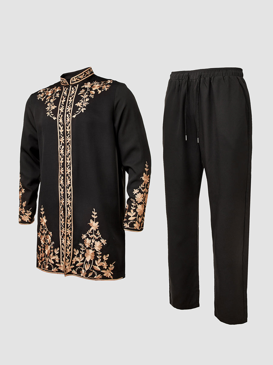 TACOHEAL Zip-Up Plant Embroidered Men's Pants Set