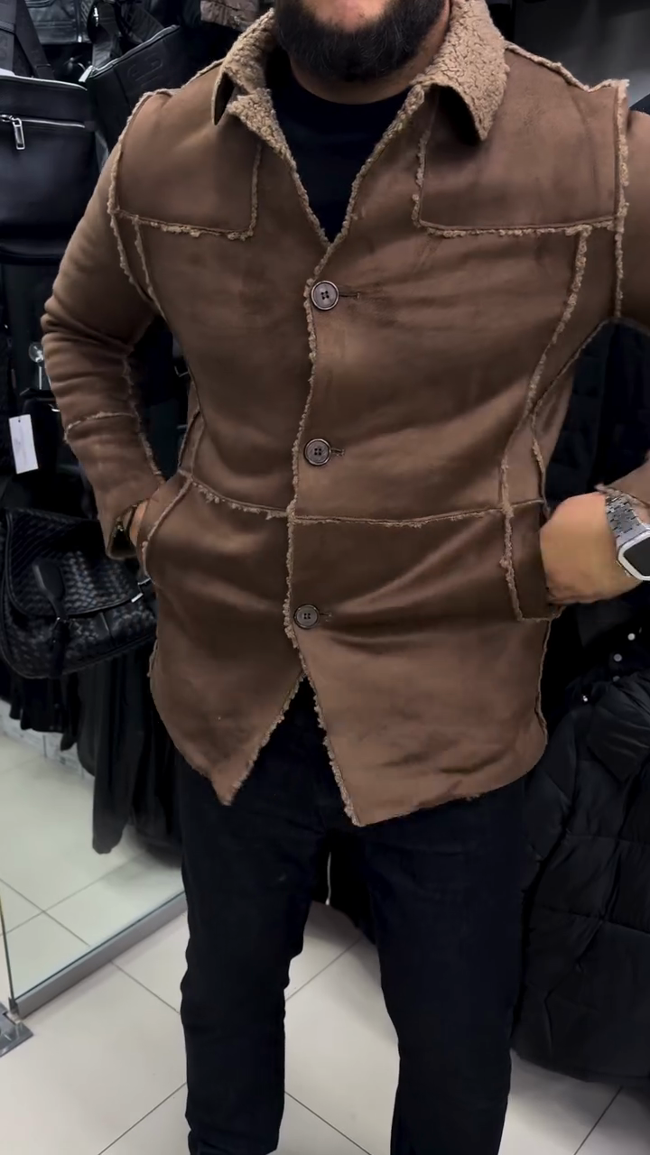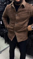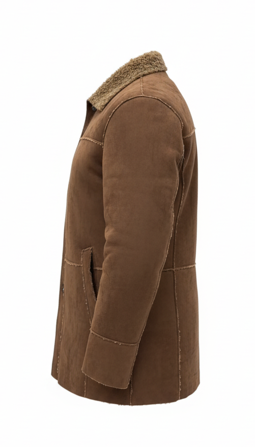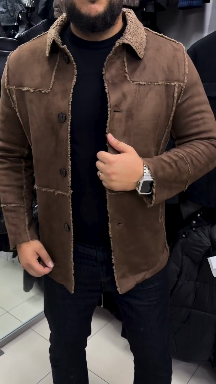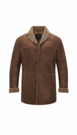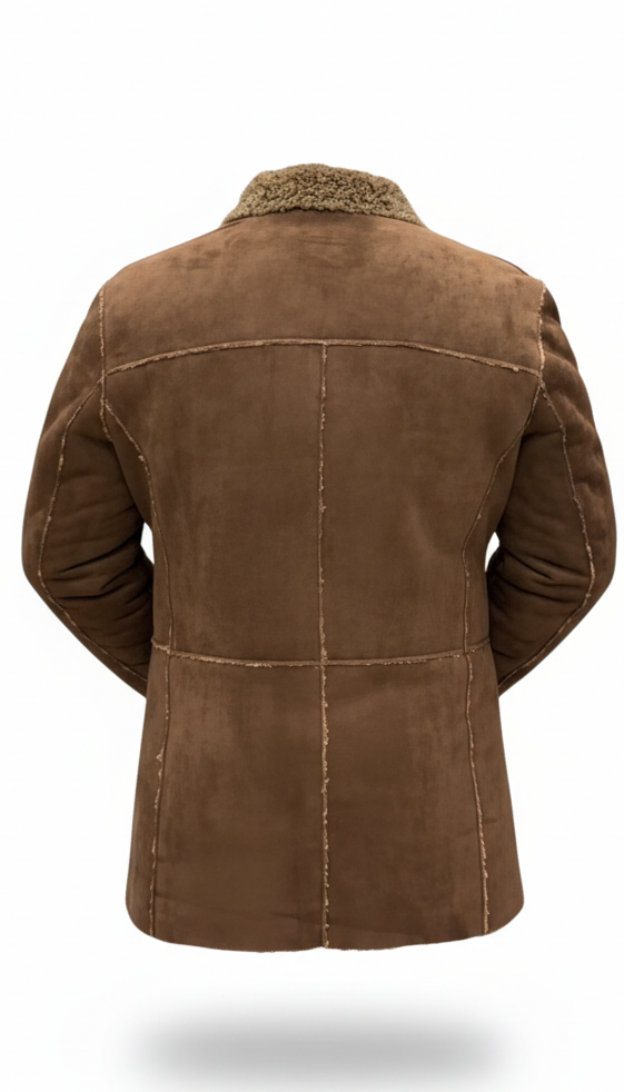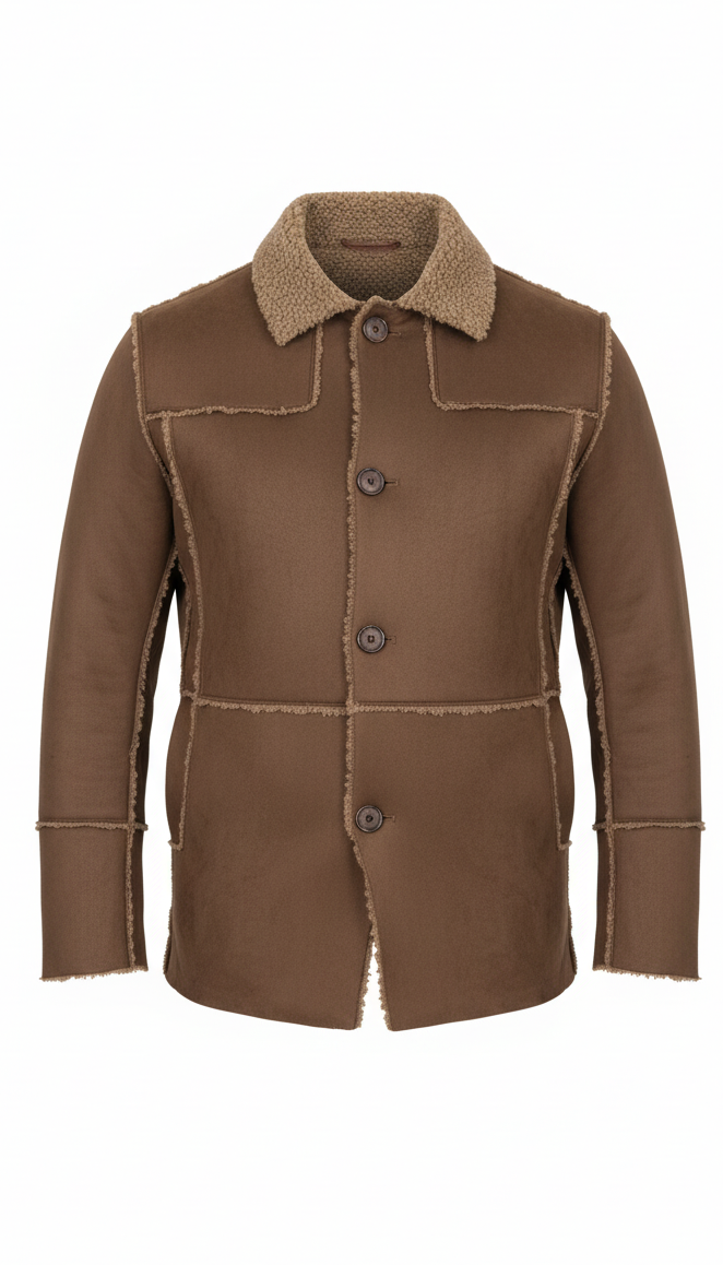Tan Suede Sherpa-Collar Overshirt Jacket